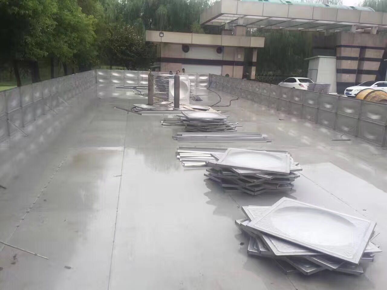 2017年1月3日,廣州市南北測(cè)控科技有限公司與我司正式群簽訂304不銹鋼食品級(jí)水箱購(gòu)銷(xiāo)合同,由于項(xiàng)目特殊,水箱與常規(guī)水箱有區(qū)別,該項(xiàng)目水箱只有5個(gè)面,沒(méi)有頂,整個(gè)水箱露天在廠房之間,為了保證水箱使用壽命,客戶(hù)應(yīng)我司要求,在水箱頂部搭建了雨棚,以保證水箱內(nèi)水質(zhì)。